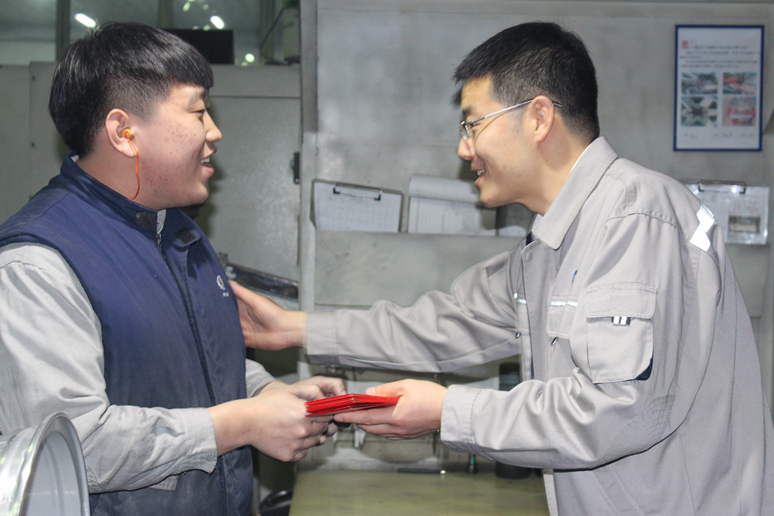 中秦兴龙董事长、总裁田纯刚、中秦兴龙副总裁、工业集团总经理陈彦广以及控股公司和工业集团的高管团队、工业集团的中层管理者共同组成了三支慰问队伍,共计80人,从除夕当天开始,分别从上午10:30、傍晚19:00、晚上22:00、午夜0:30、1:30分,到大年初一上午11:00,多次多批慰问戴卡兴龙公司、兴龙轮毂公司、中秦渤海公司生产线以及宿舍的广大员工们,为每一位坚守岗位、可敬可爱的兴龙员工送上红包、慰问品以及节日的问候。收到慰问的员工倍受感动、深受鼓舞,大家感受到了来自兴龙家人们的关爱。