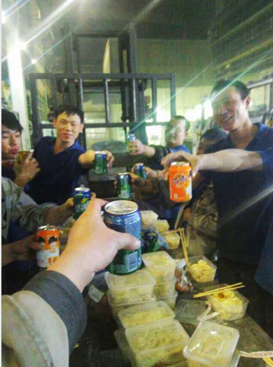 除夕当晚,大食堂直播2016年央视春节联欢晚会,并准备了饺子食材,集团总经理陈彦广、副总经理侯乃仙带着慰问的领导集体为员工包起了饺子,并送给每一位现场员工,员工们边看着春晚边吃着热气腾腾的饺子,内心暖融融的。员工们说,这饺子味儿是独属于兴龙家人的,美味十足,虽然没有回家过年,但是和兴龙家人们一起过了一个难忘的春节。