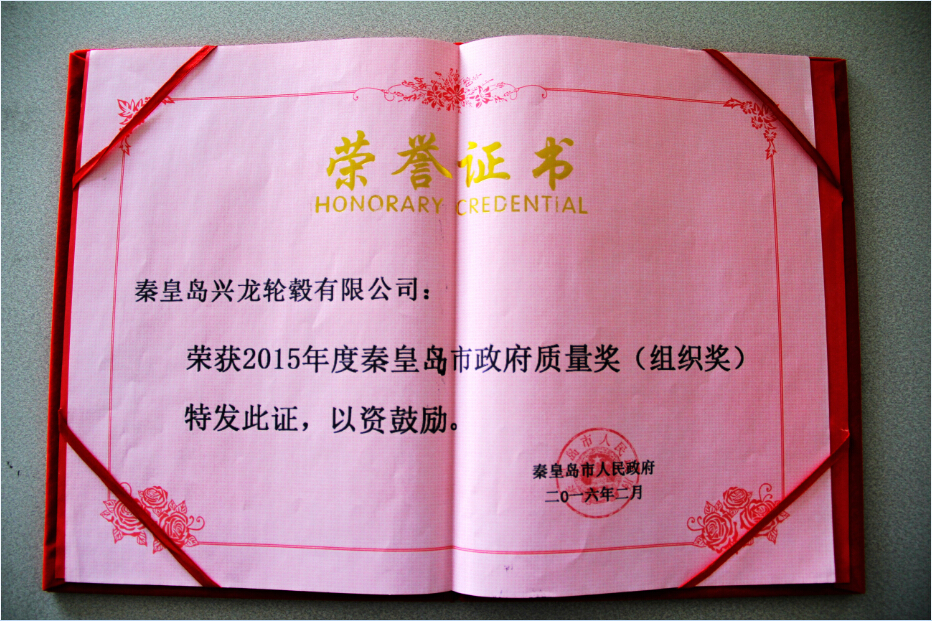 兴龙轮毂有限公司荣获2015年度秦皇岛市政府质量奖(组织奖)