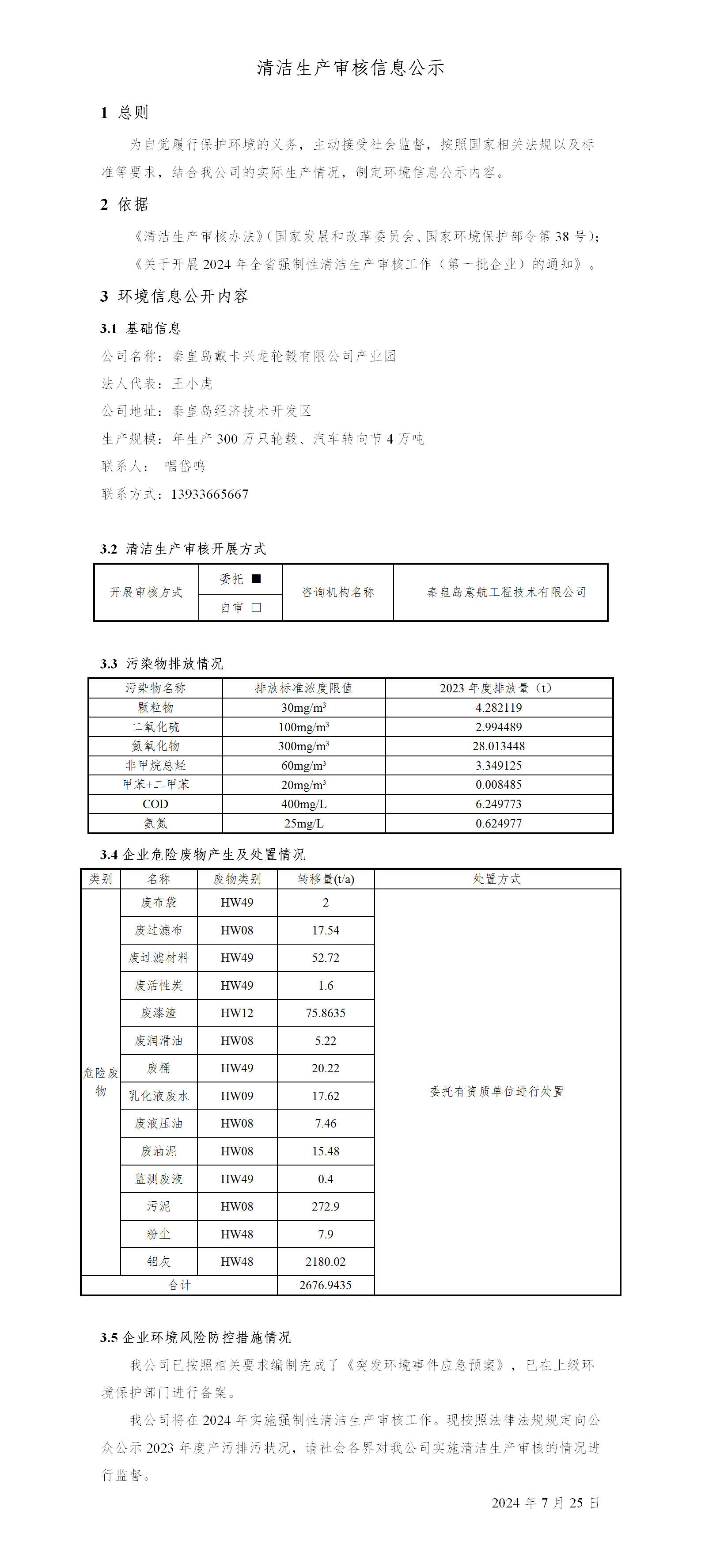 清洁生产审核信息公示