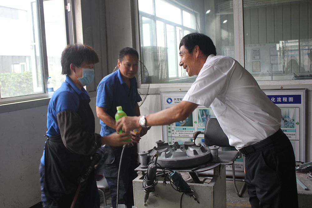 发布日期:2015-07-28作者:7月28日上午,中秦兴龙董事长、总裁田纯刚,监事长高宽、副总裁王海军、刘佐壮、工会主席田绍华、采购总监李政河、人力资源副总监黄钰童、工会副主席田凤珍等一行前往工业集团厂区,在工业集团高管团队的陪同下,分两组慰问酷暑之下仍坚守在工作一线的广大干部员工。