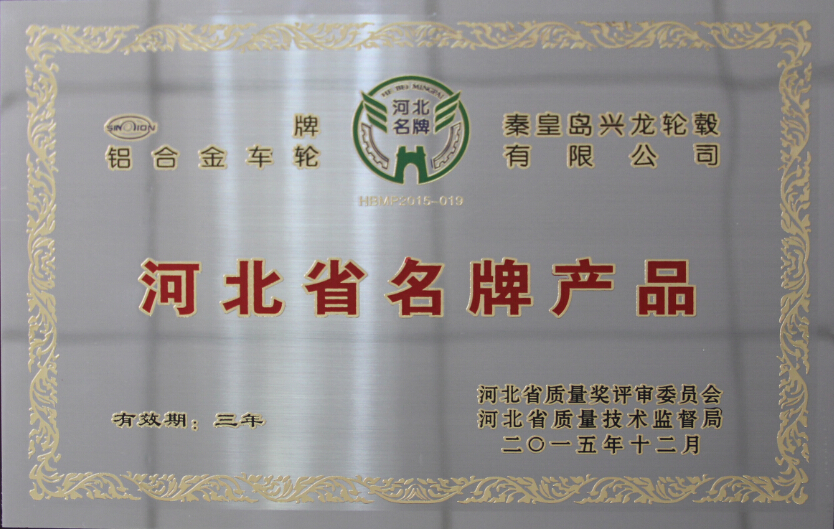 · “兴龙轮毂”牌铝合金车轮荣获河北省名牌产品。
