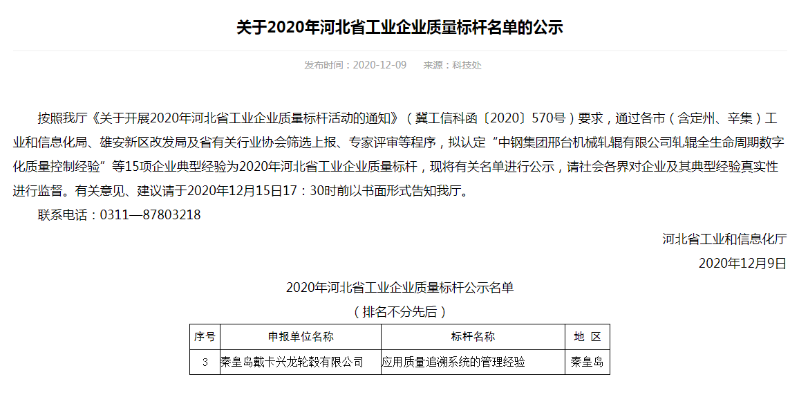 · 戴卡兴龙轮毂公司被省工信评为2020年河北省工业企业质量标杆